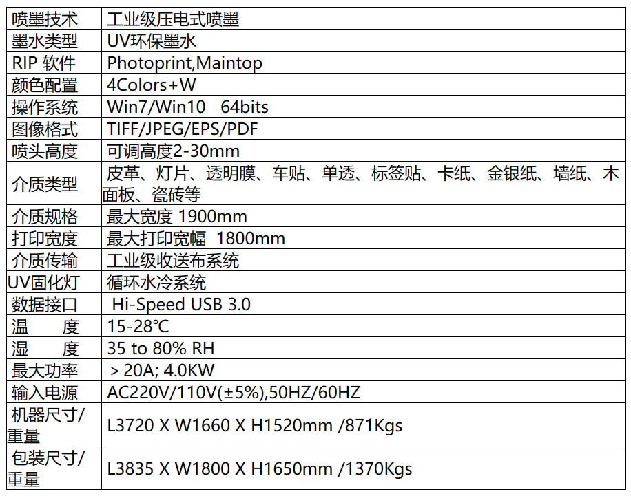 1、选装Konica Km1024i喷头; 2、独立控制吸附系统,吸附力均匀; 3、采用交流伺服电机及控制技术;精准,平稳,耐用; 4、进口直线静音导轨,噪音低,精度高,运行更平稳。 5、网带传输,步进精准,不跑偏,不起皱; 6、多种配置,白墨、光油可选装。