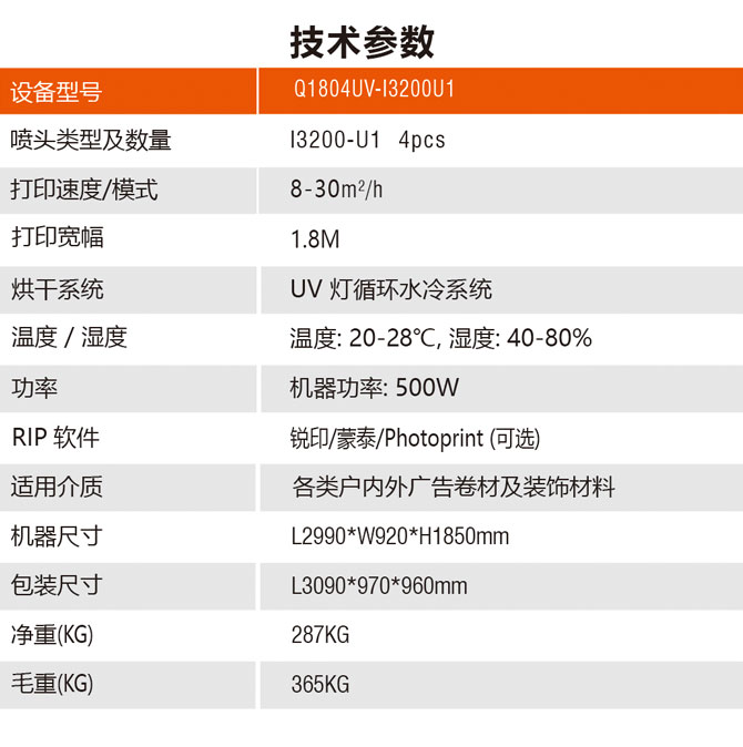 1.4个I3200-U1打印头 2.双动力自动取料送料系统。 3.标准LED水冷紫外线灯,固化效果好 4.适用于不同的打印模式:W+C、C+W、C+W+C、C+W+C+光油,全彩CMYK