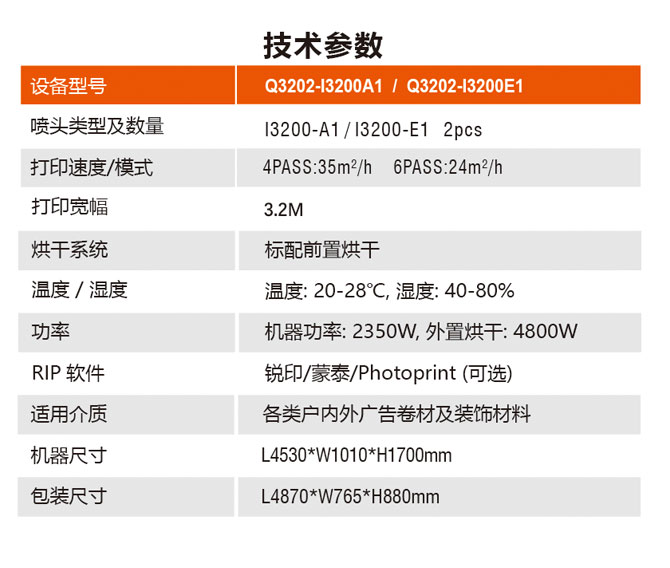 1.可选I3200-A1、I3200-E1喷头; 2.恒张力收放系统,送布收布更精准平稳; 3.标配前、中、后加热; 4.加强型机身架构,提升打印的精度和稳定